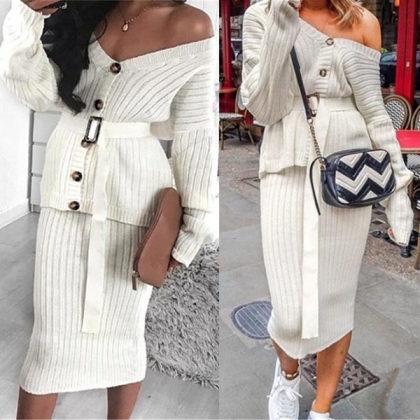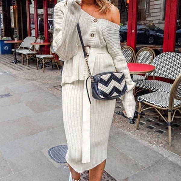 When you wanna update your daily style,you can have a look at this knit dress. Mock two-piece design makes it look so chic and distinctive. Finished with long sleeve,v-neck,front button and a fit silhouette,this dress knows how to exudes your flirty and feminine side.
