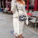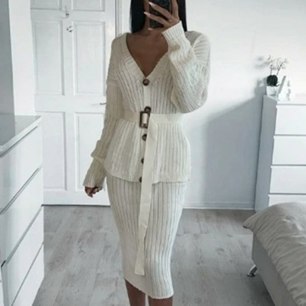 Sexy V-neck Long Sleeve Solid Color Mock Two-piece Knit Dress