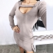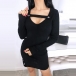 Sexy V-neck Long Sleeve Solid Color Slim Fit Dress