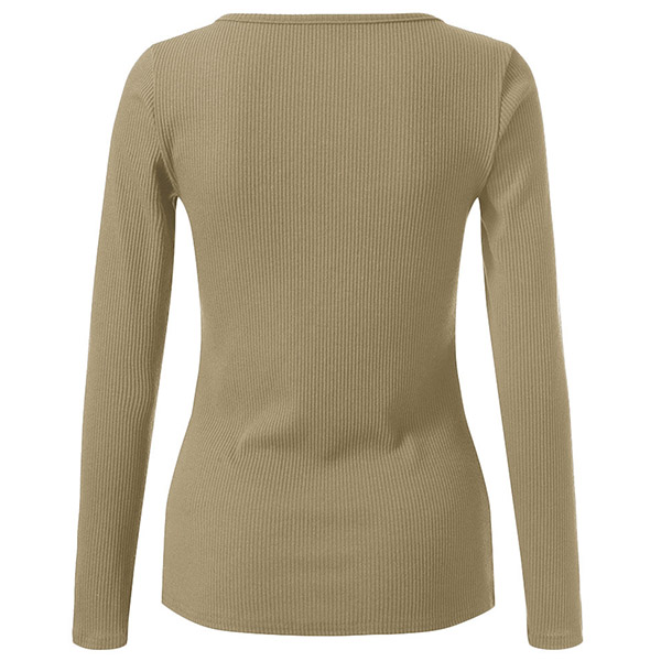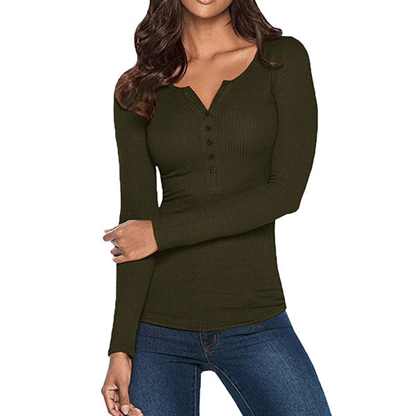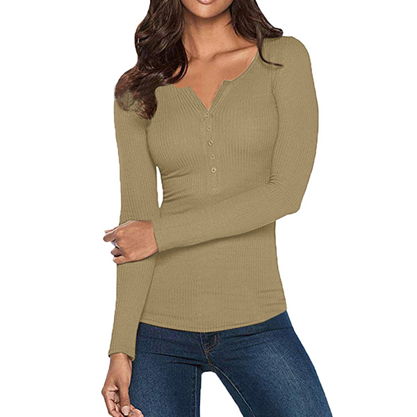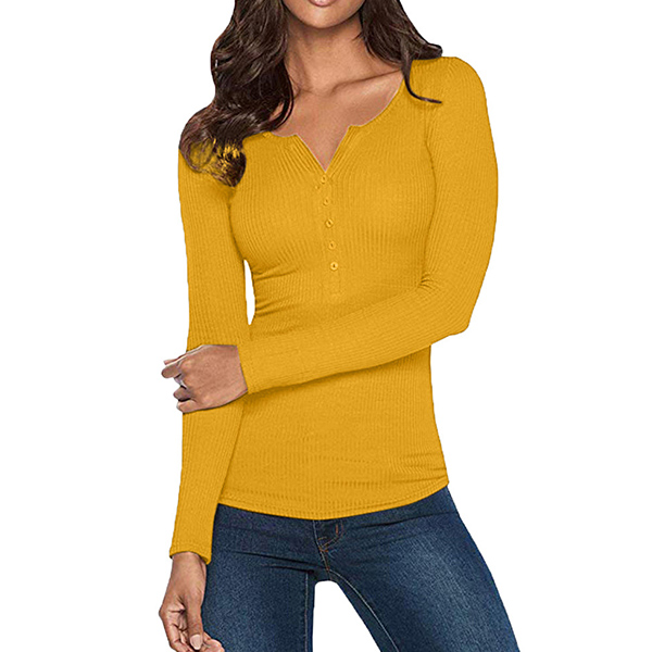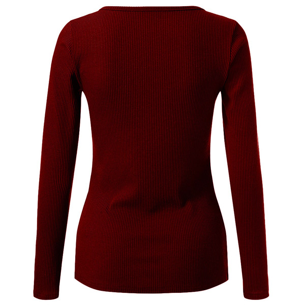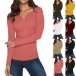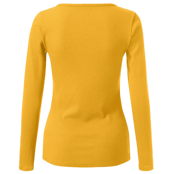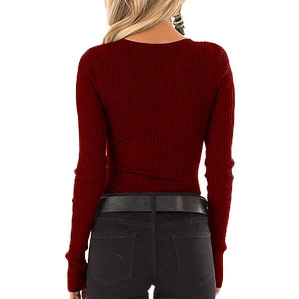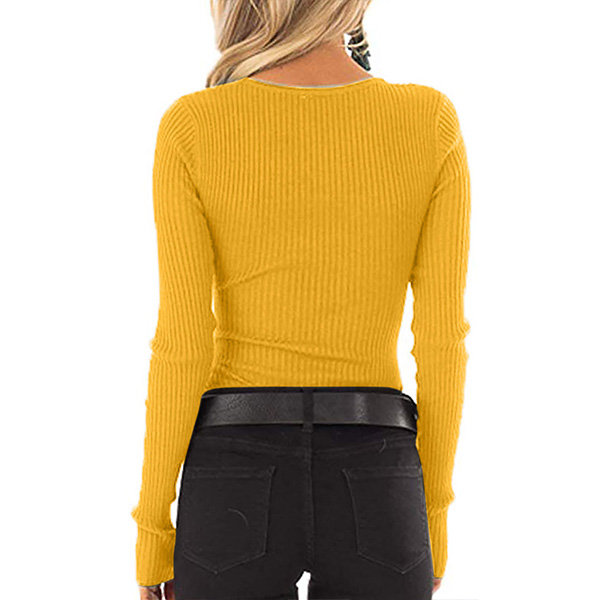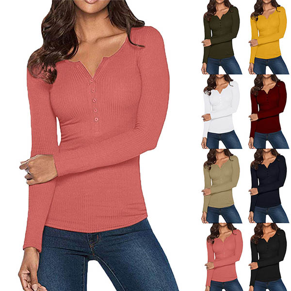 Sexy V-neck Long Sleeve Solid Color Slim Fit T-shirt