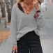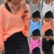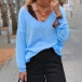 Sexy V-neck Long Sleeve Solid Color T-shirt
