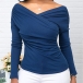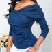 Sexy V-neck Long Sleeve Solid Color T-shirt
