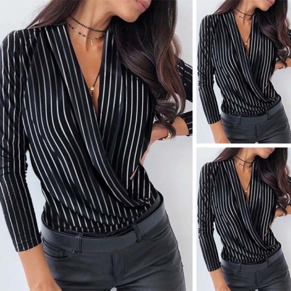 Sexy V-neck Long Sleeve Striped Top