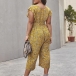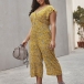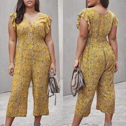 Sexy V-neck Lotus Sleeve High Waist Printed Jumpsuit