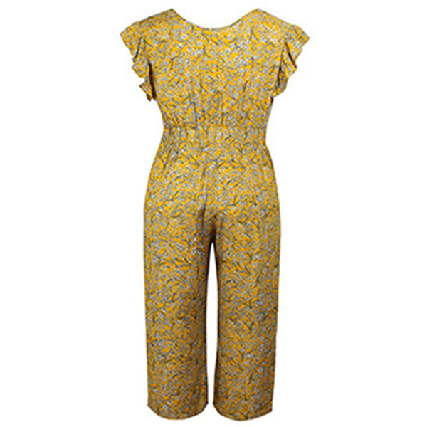 It is a good chance to update your style and enhance your charm with this jumpsuit! Its vibrant floral print details make this piece look so eye-catching. Finished with v-neck,lotus sleeve and high waist design,this jumpsuit also can showcase your slender figure. Let your summer style bloom in this piece!
