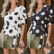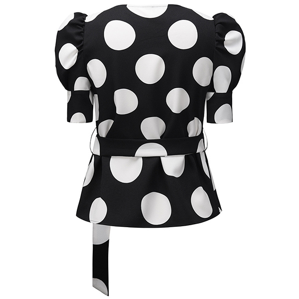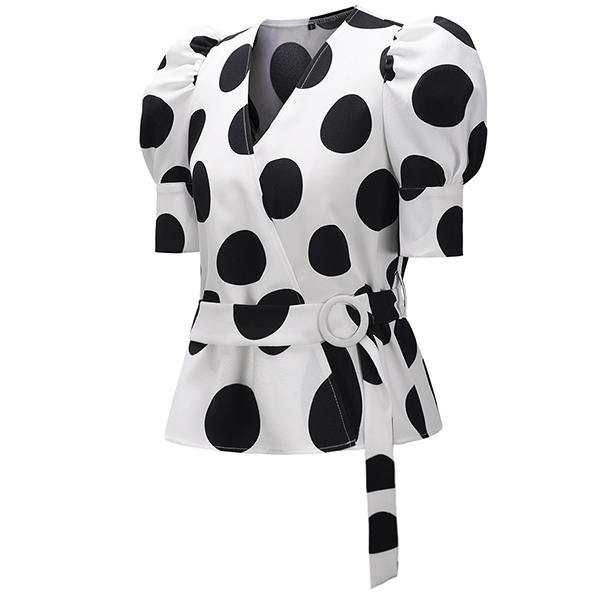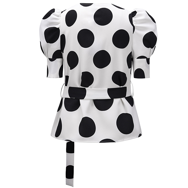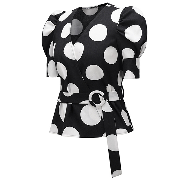 Sexy V-neck Puff Sleeve Dots Printed Top with Waistband