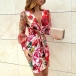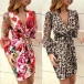Sexy V-neck See-through Lantern Sleeve Slim Fit Printed Dress
