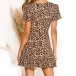 Sexig V-ringad kortärmad leopardmönstrad klänning med hög midja