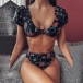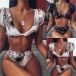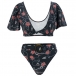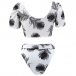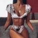 Sexy V-neck Short Sleeve High Waist Printed Bikini Set