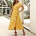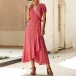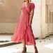 Wanna a beautiful dating look? Then you can just slip into this printed dress. It is finished with short sleeve,v-neck and an irregular ruffle hem,this dress can make you look effortlessly charming and beautiful. Dress it up with your favourite sandals for a sassy look.