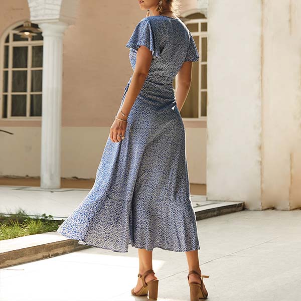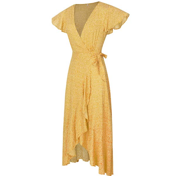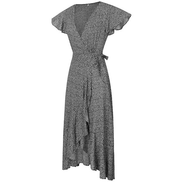 Sexy V-neck Short Sleeve Irregular Ruffle Hem Printed Dress