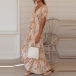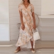 Sexy V-neck Short Sleeve Irregular Ruffle Hem Printed Dress