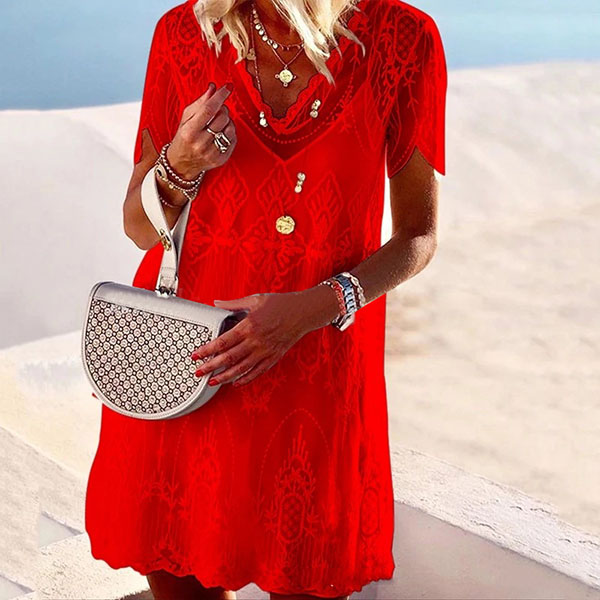 Embrace the warmth of a sunny weekend with a delightfully dress such as this creation. The v-neck and lace spliced design can enhance your feminine appeal,while its soft fabric and loose silhouette design will ensure you a comfortable day. Like it? Then have a try to boost your charm.