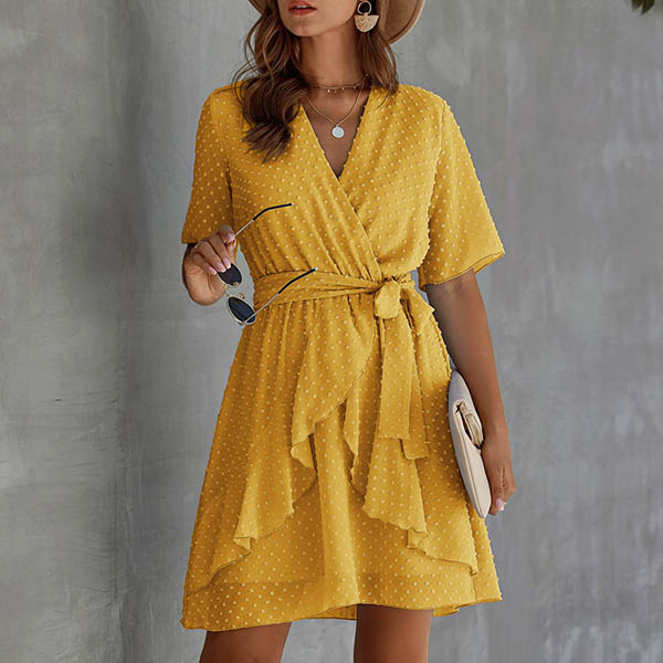 Embrace the warmth of a sunny weekend with a delightfully dress such as this creation. It is designed with short sleeve,v-neck and ruffle design,sexy yet flirty. From your daytime out to night dating,this dress can give you a perfect transition.