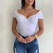 Sexy V-neck Short Sleeve Solid Color Slim Fit Bodysuit