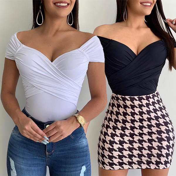 When you wanna showcase your perfect figure,you can have a try this bodysuit! It comes with a solid color,with short sleeve and v-neck design,simple,cozy yet sexy. We suggest you matching with a high waist bottom to finish a stylish and charming daily look.
