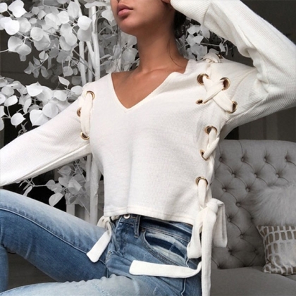 the v-neck and side lace-up details are the highlights,which can exude your sexy and flirty flavor.