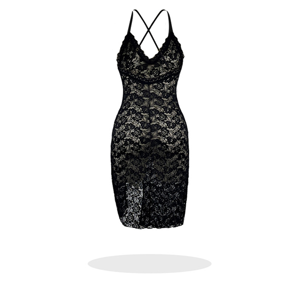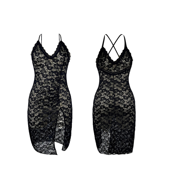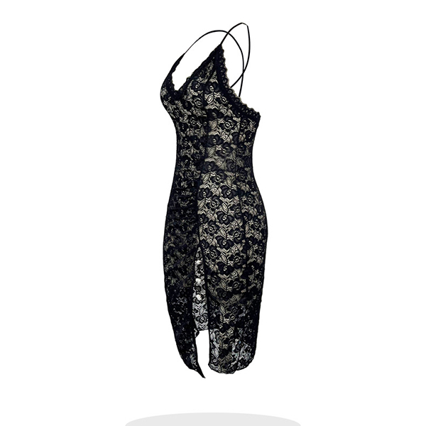 Nattklänning med V-ringning, pärlprydd korsrygg och sidoslits – sexig och rygglös