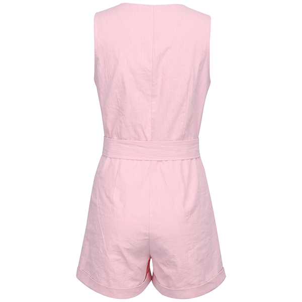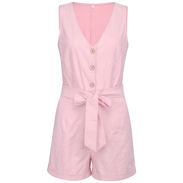 Sexy V-neck Sleeveless Front-button High Waist Romper