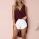 Sexy V-neck Sleeveless High-low Hem Solid Color Top