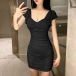 Sexy V-neck Sleeveless High Waist Solid Color Dress