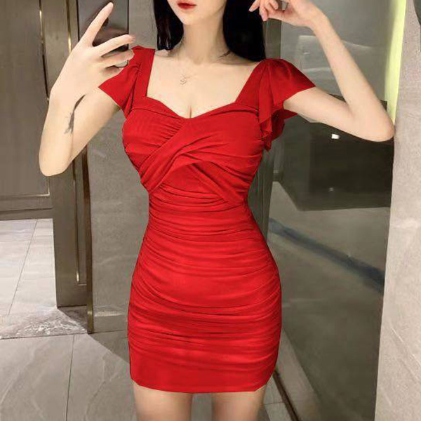 Exude a sense of elegant femininity by donning this dress. Solid color tone design makes it look stylish yet generous,while the v-neck design can exude your feminine appeal. Meanwhile,the high waist and clean silhouette design will portray your slender figure. This is a dress which can take you to different occasions. So why not buy one?