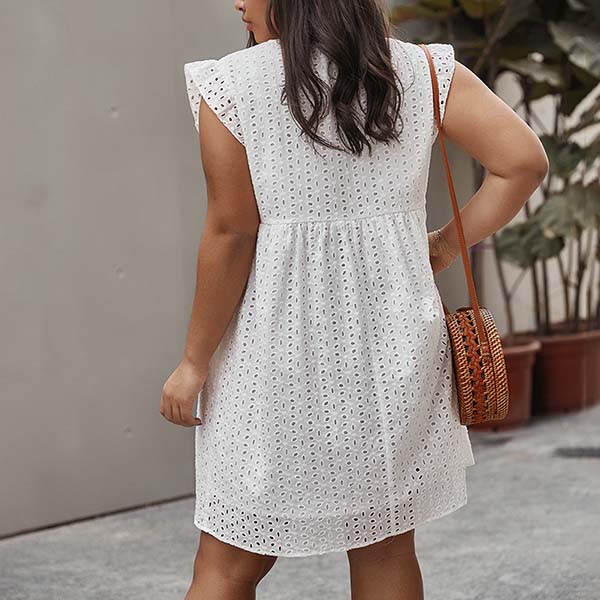Take an interest with this dress to give your wardrobe a seasonal update. The v-neck and hollow out details make this piece look so sexy and flirty. Meanwhile,its soft and breathable fabric can give you a comfortable day. Just slip into this dress to express your style and charm.
