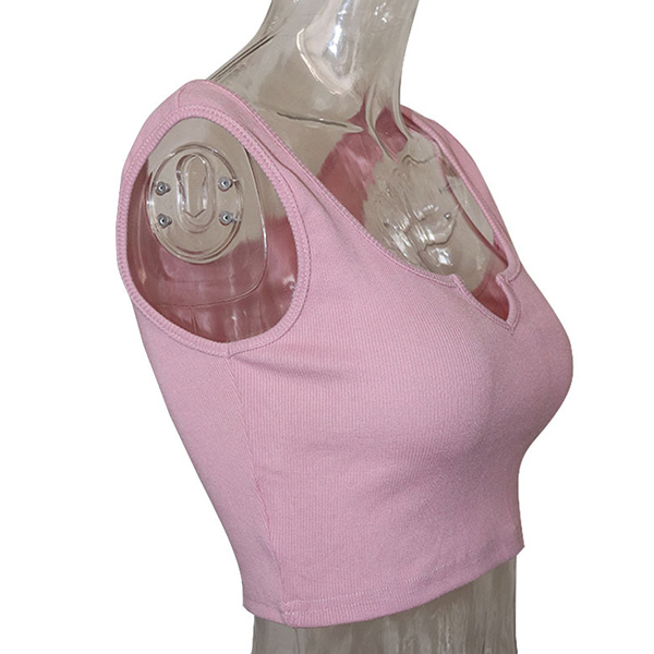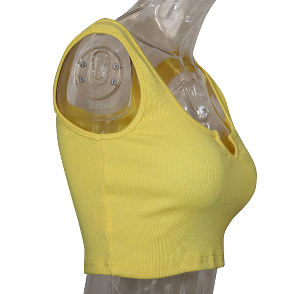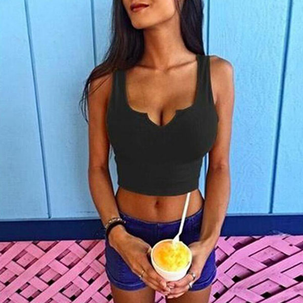 Sexy V-neck Sleeveless Solid Color Crop Top