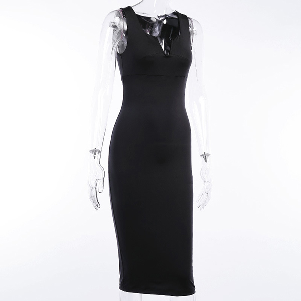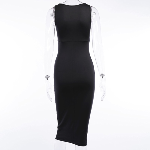 Sexy V-neck Sleeveless Solid Color Slim Fit Dress
