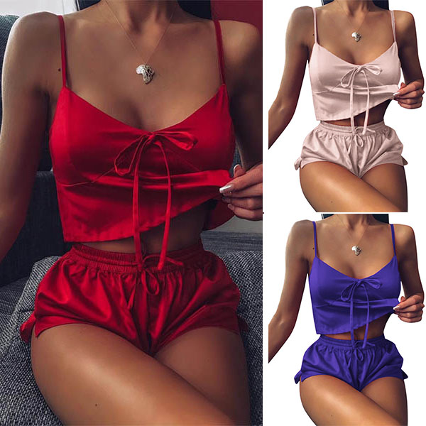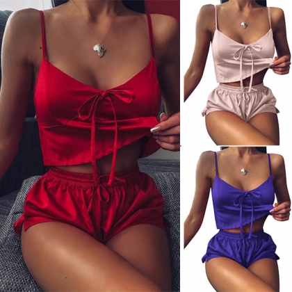 Sexy V-neck Sling Top + Shorts Nightwear Two-piece Set