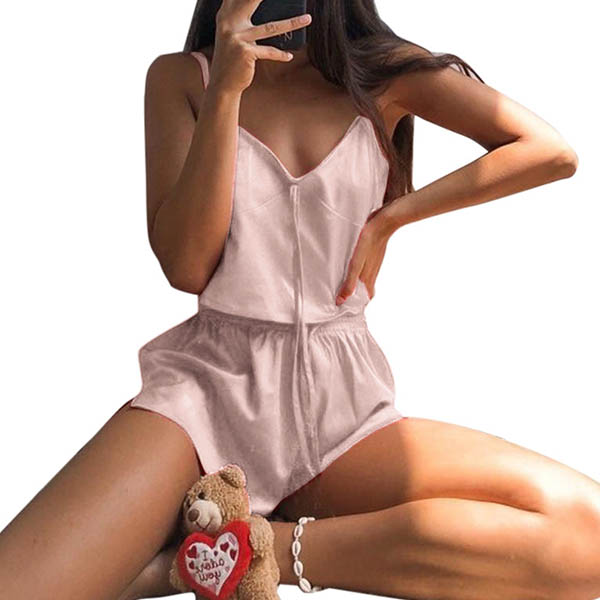 Thanks to the super soft fabric,you can have an utmost comfort in this two-piece set. Solid color style,including a v-neck sling top and a shorts,this cozy yet flirty two-piece set is perfect fit for your home time and sleeping time.