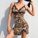Även under din hemmatid kan du utstråla din sexiga och flirtiga sida genom denna nattklänning. Dess lockande detaljer som rygglös, v-ringad, slitsad fåll och spetsskarvad design gör denna leopardklänning full av förföriska vibbar. Denna nattklänning kan göra din hemtid mer färgstark.