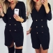 Sexy V-neck Slit Hem Long Sleeve Double-breasted Dress
