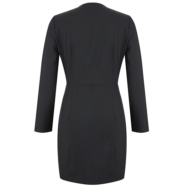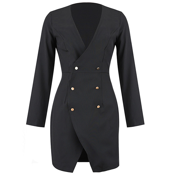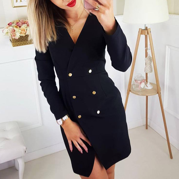 This dress comes with a classic yet flattering black tone,the v-neck and slit hem design can offer you a more flirty look,while the double-breasted design will make this piece look more attractive. For your dinner dates or weekend out,this sexy and delicate dress can be a wise choice.