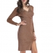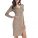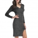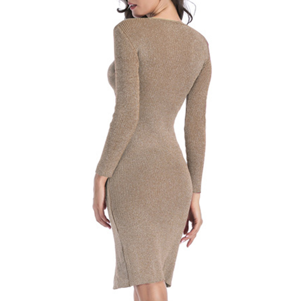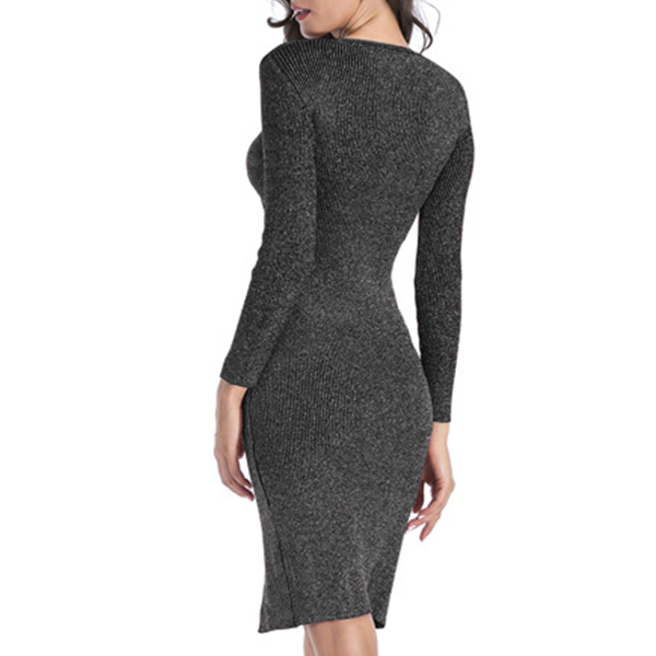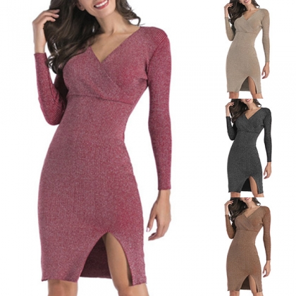 Sexy V-neck Slit Hem Long Sleeve Slim Fit Knit Dress