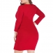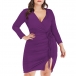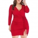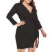 Sexy V-neck Slit Hem Long Sleeve Solid Color Slim Fit Dress