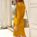 You are sure to catch more eyes when you wear this knit dress. It features a solid color,its sexy and alluring design details like v-neck,slit hem and oblique button design make this piece look so attractive. So why not slip into this little piece to exude your beauty and femininity?