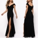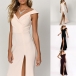 Sexy V-neck Slit Hem Sleeveless Solid Color Party Dress