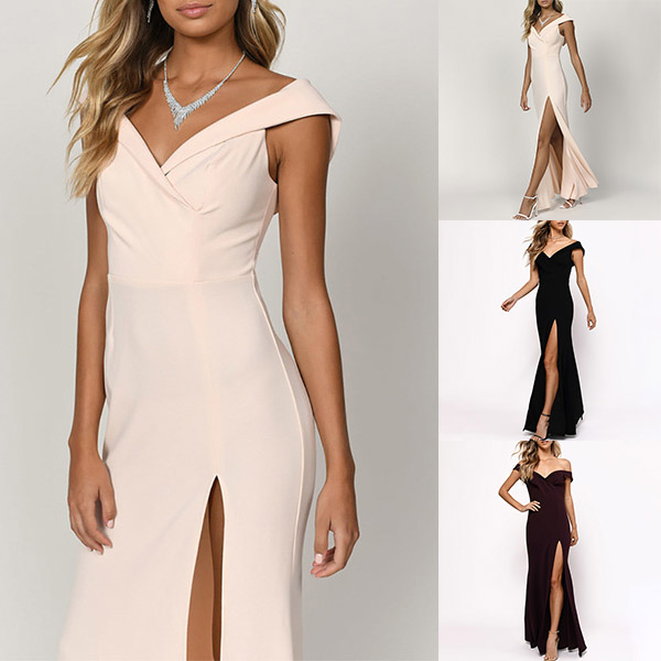 When you have no idea about what to wear for your fancy events,then you can make your eyes focused on this dress. It boasts a solid color,finished with sleeveless,v-neck and slit hem design,this dress definitely can portray your elegant and charming image.