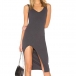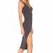 Sexig V-ringad klänning med slitskant i enfärgad slim fit