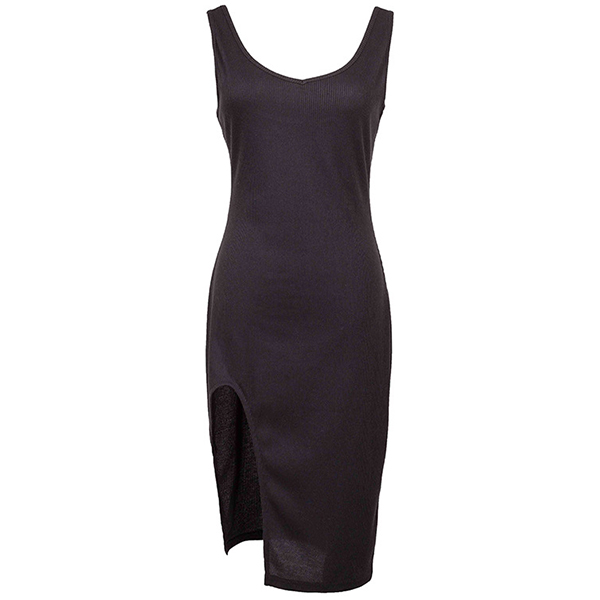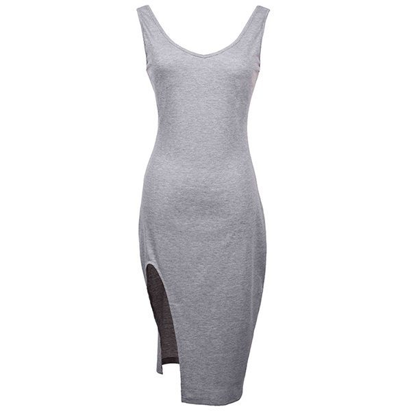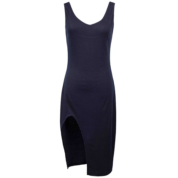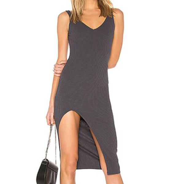 Om du letar efter en klänning som lätt kan väcka mer uppmärksamhet, fokusera på det här plagget. Enfärgad stil, designen med v-ringning och slitsfåll kan få dig att se sexig och flirtig ut, medan den passformiga siluettdesignen kommer att gestalta din smala figur. Spara en för dina middagsdatum och helgsammankomster.