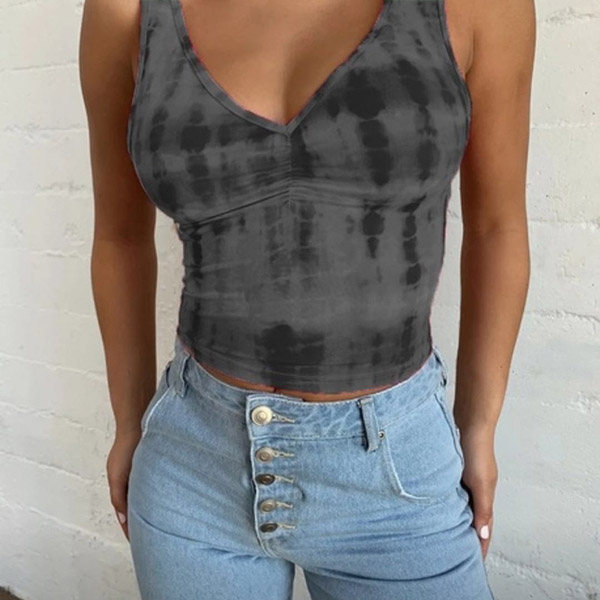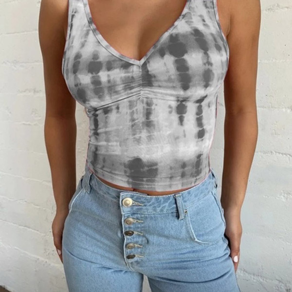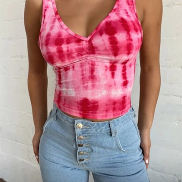 Sexy V-neck Tie-dye Printed Slim Fit Tank Top
