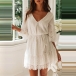 Sexy V-neck Trumpet Sleeve Lace Spliced Dress