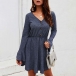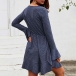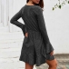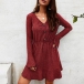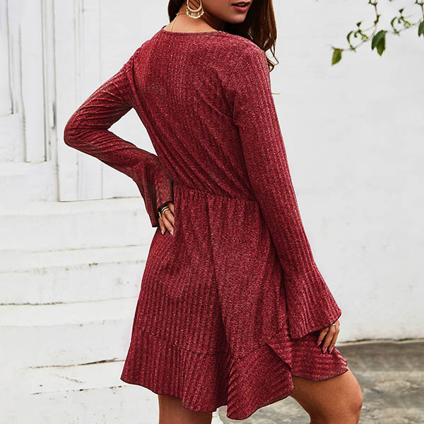 Sexy V-neck Trumpet Sleeve Ruffle Hem Solid Color Dress