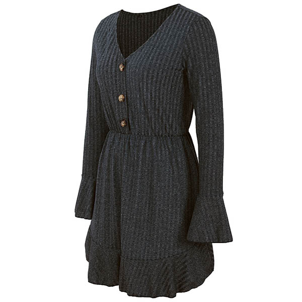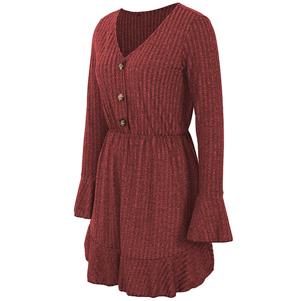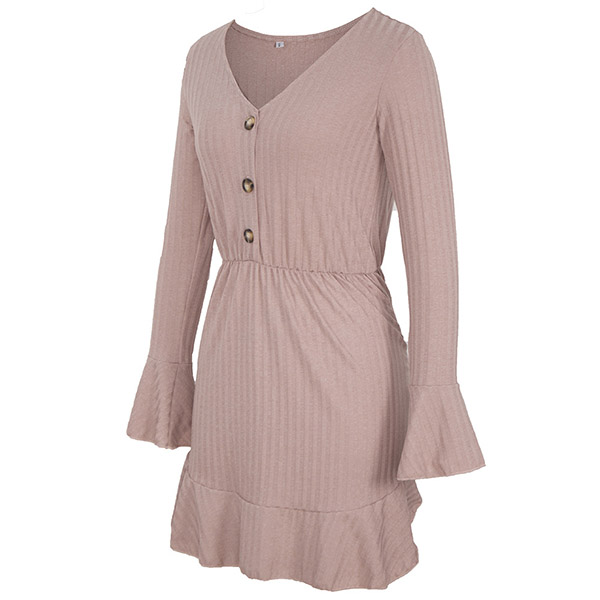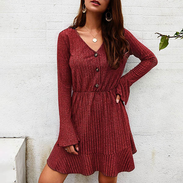 Looking for a beautiful dress for your night dating? Then how about this piece? It comes with a solid color,the v-neck,trumpet sleeve and ruffle hem design can exude your sweet yet feminine side. Dress it up with your favourite heels,you can look charming enough!