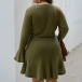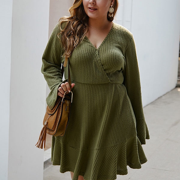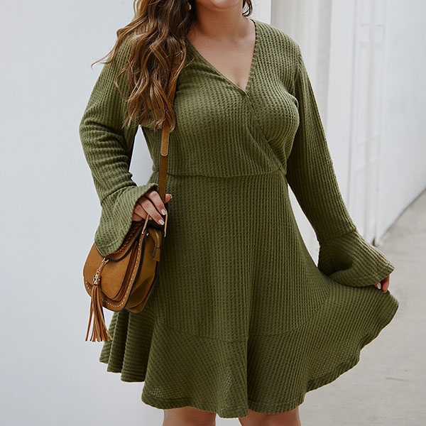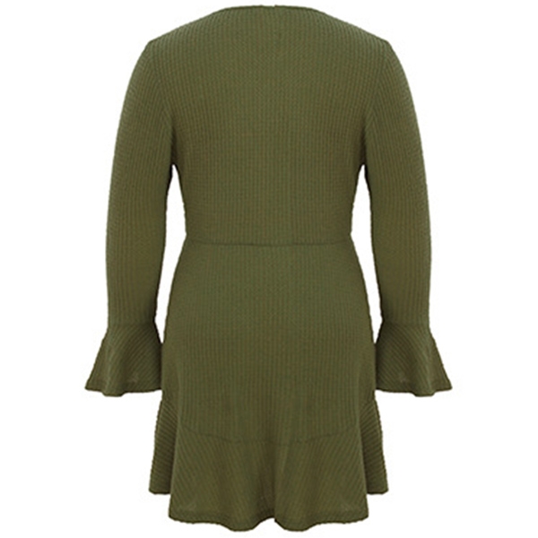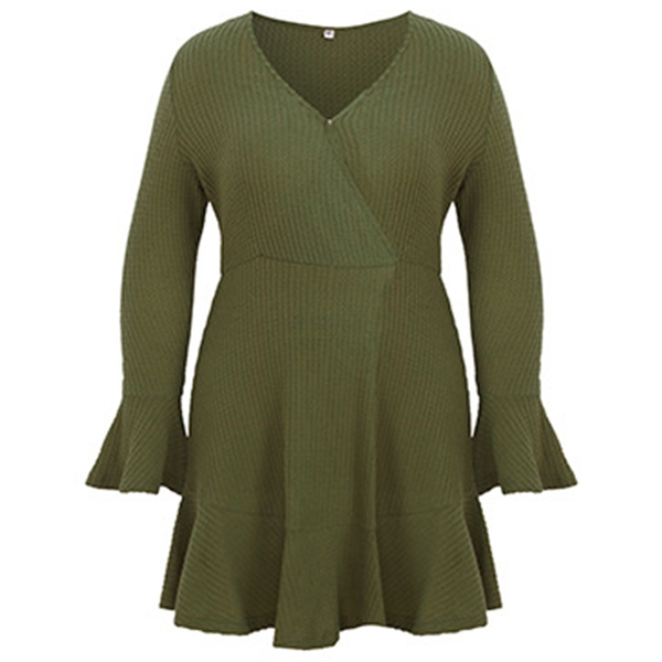 beautiful and feminine side. Solid color style,the trumpet sleeve,v-neck and ruffle hem