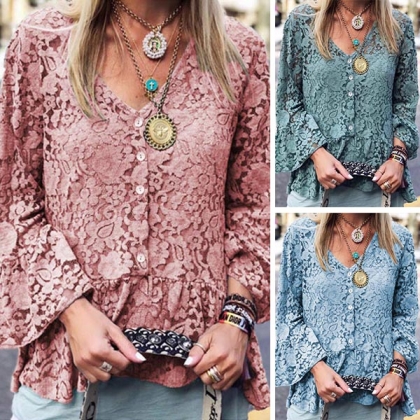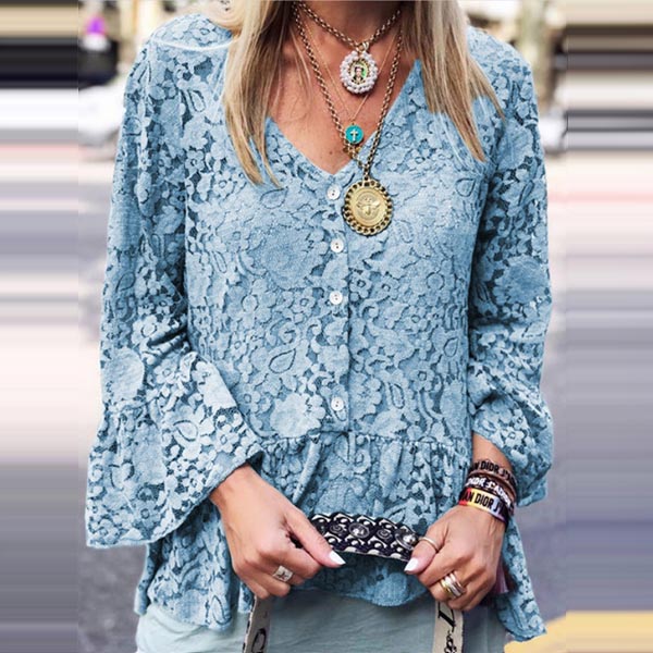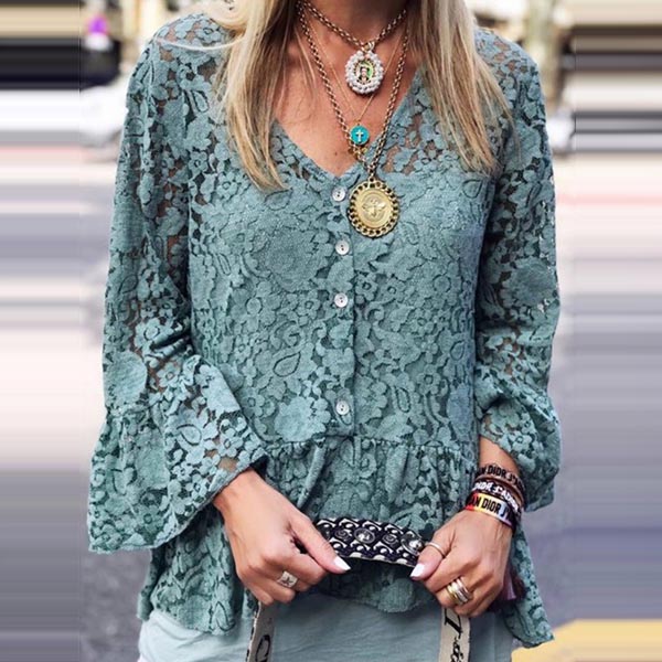 Sexy V-neck Trumpet Sleeve V-neck Lace Top