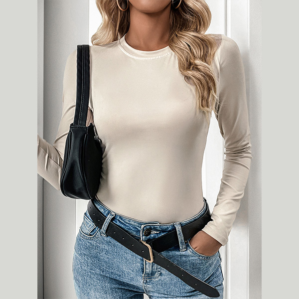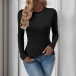 Enfärgad långärmad baströja med rund hals - 2-delar/set