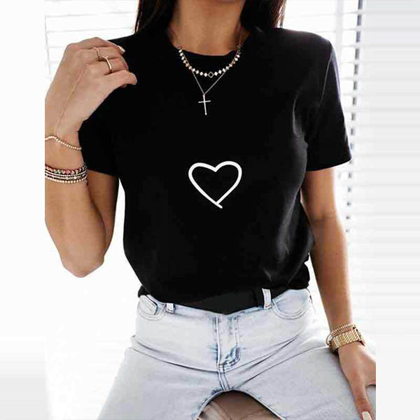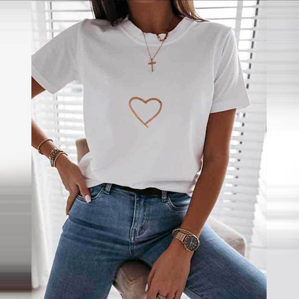 Combines of simple,cozy yet stylish vibes,this t-shirt is worth to have a place in your wardrobe. Crafted from soft and breathable fabric,with short sleeve,round neck and a heart pattern,this t-shirt can offer you a comfortable day as well as offer you different matching styles.