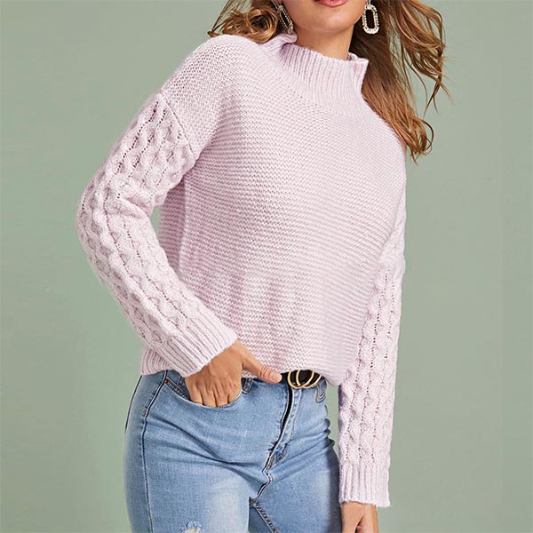 If you like simple style piece,then this sweater is sure to strike your mind. It comes with a sweet yet stylish pink tone,finished with long sleeve and mock design,this sweater not only can keep you warm,but also can be matched with different style bottoms like shorts,skirts,jeans and so on.